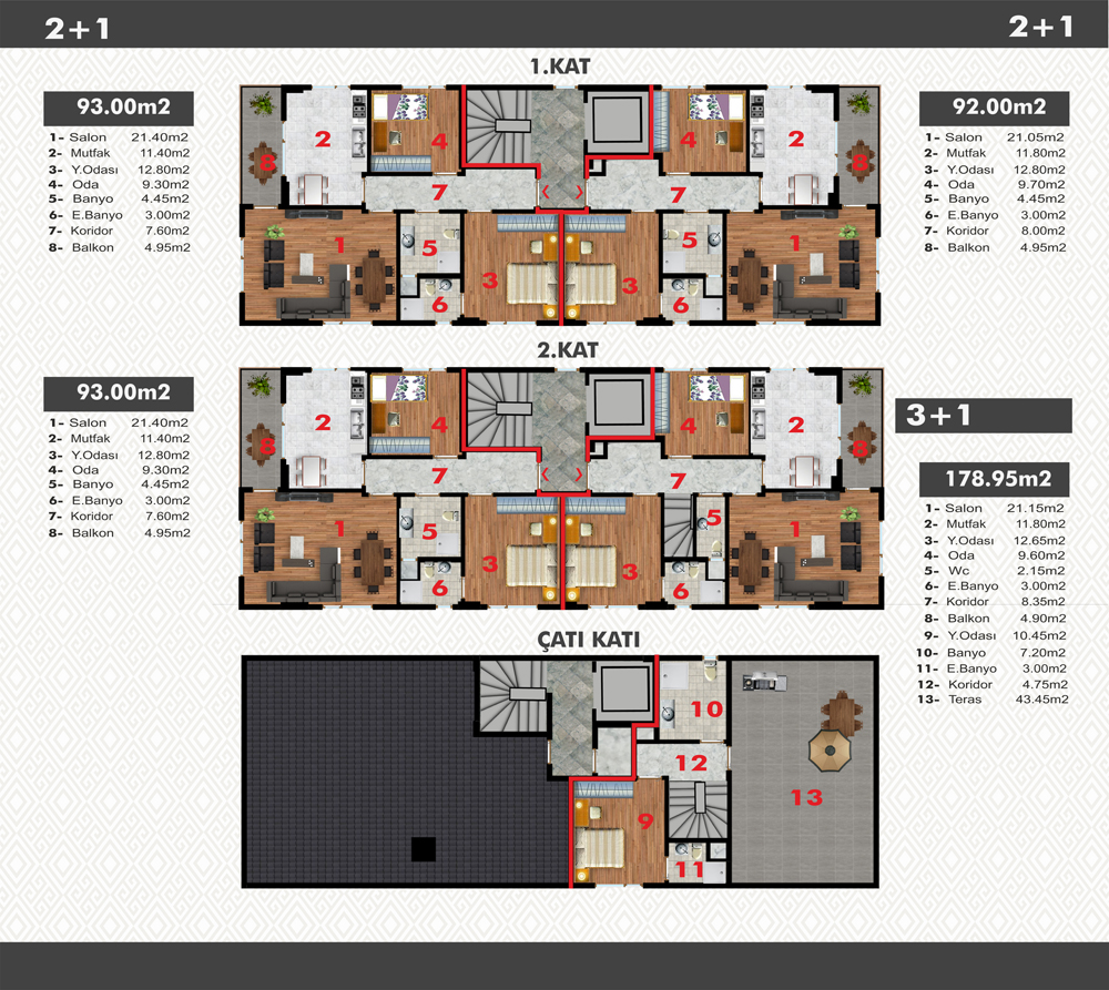 • 4 Adet 3+1 190 m² Dublex,