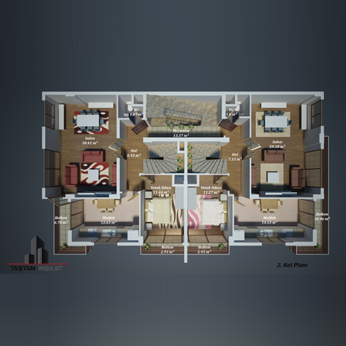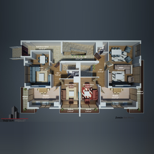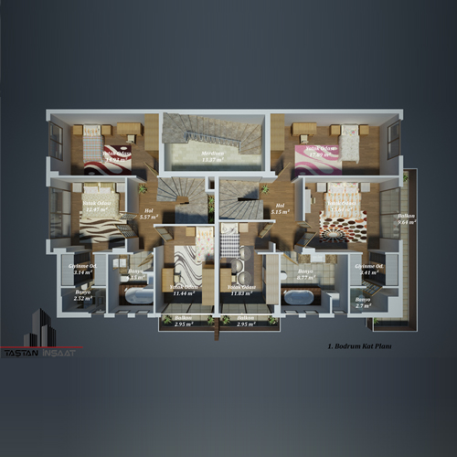 • Her Katta 7.75 m²'lik Ortak Alanlar Daire Metrekarelerine Dahil Edilmemiştir.
